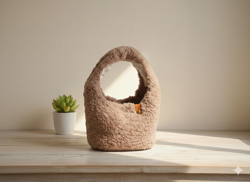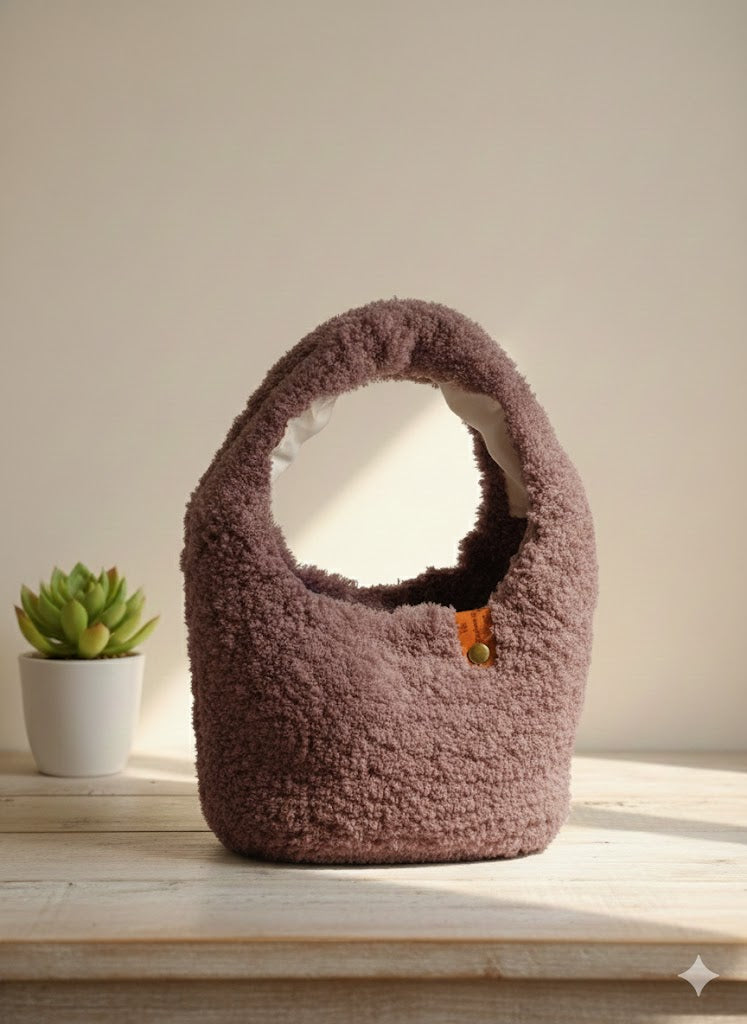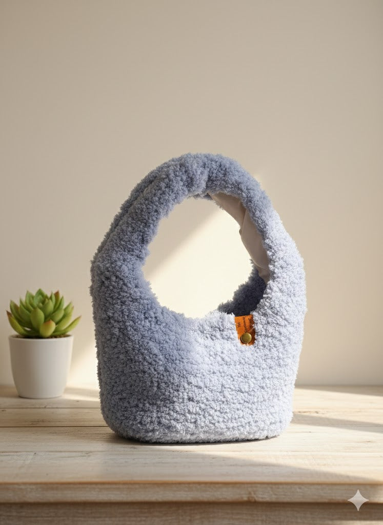 DISEÑADA DE FORMA ARTESANAL ,TEJIDA A MANO EN LANA PELUDA.